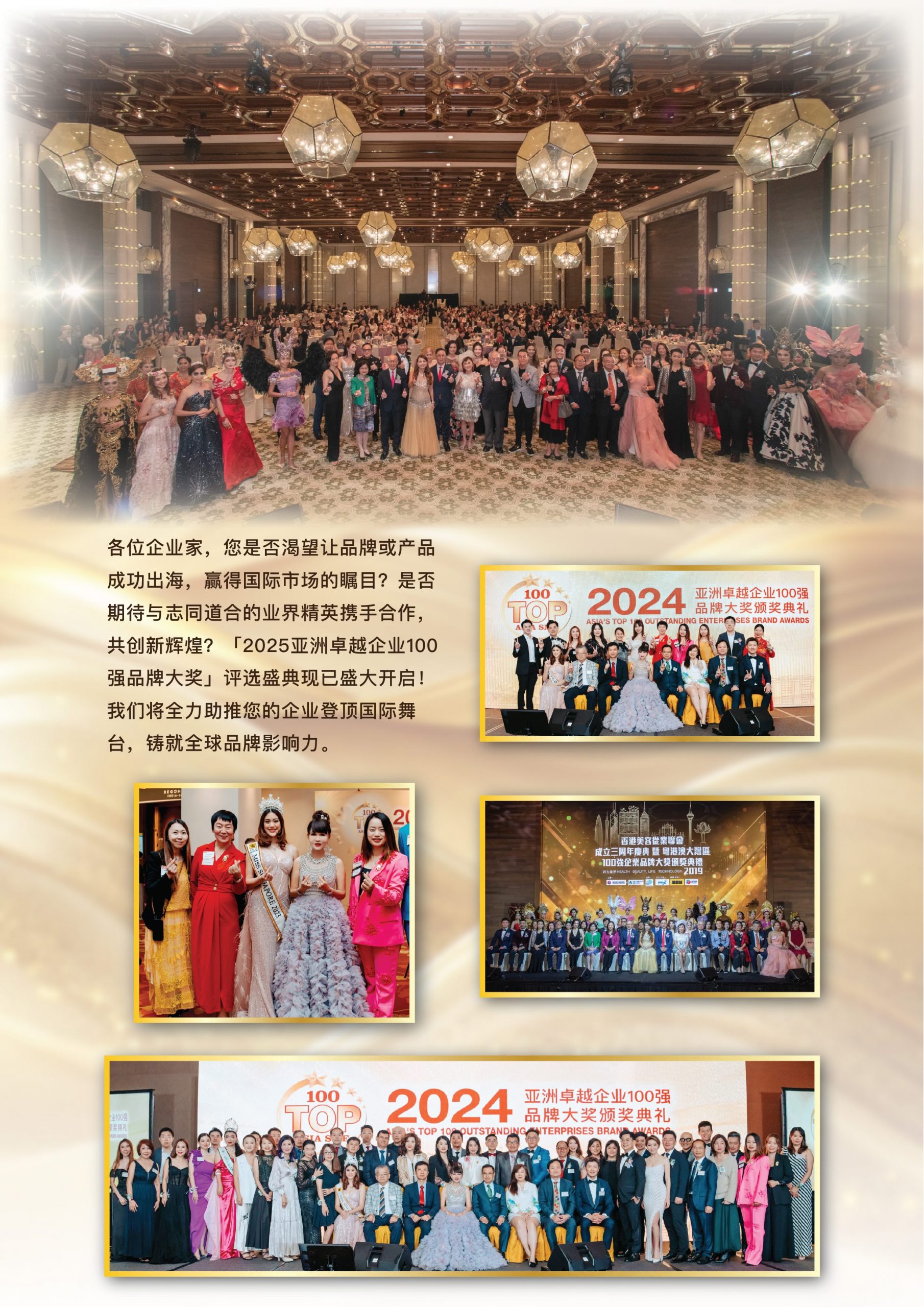 Esteemed entrepreneurs, do you aspire to propel your brand or products onto the global stage and capture international market attention? Do you look forward to collaborating with like-minded industry leaders to forge new milestones? The 12025 ASIA'S TOP 100 OUTSTANDING ENTERPRISES BRAND AWARDS, ceremony is now grandly unveiled! We are committed to empowering your enterprise to ascend the international arena and forge a globally influential brand